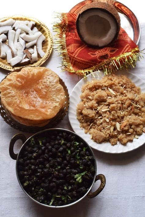 On this day, people who keep Navratri fast, break the fast by feeding young girls with the traditional bhog of Poori, Sooji Halwa, and Sookhe Kale Chane. The tradition of eating Poori, Sooji Halwa, and Sookhe Kale Chane on Ashtami/Navmi.